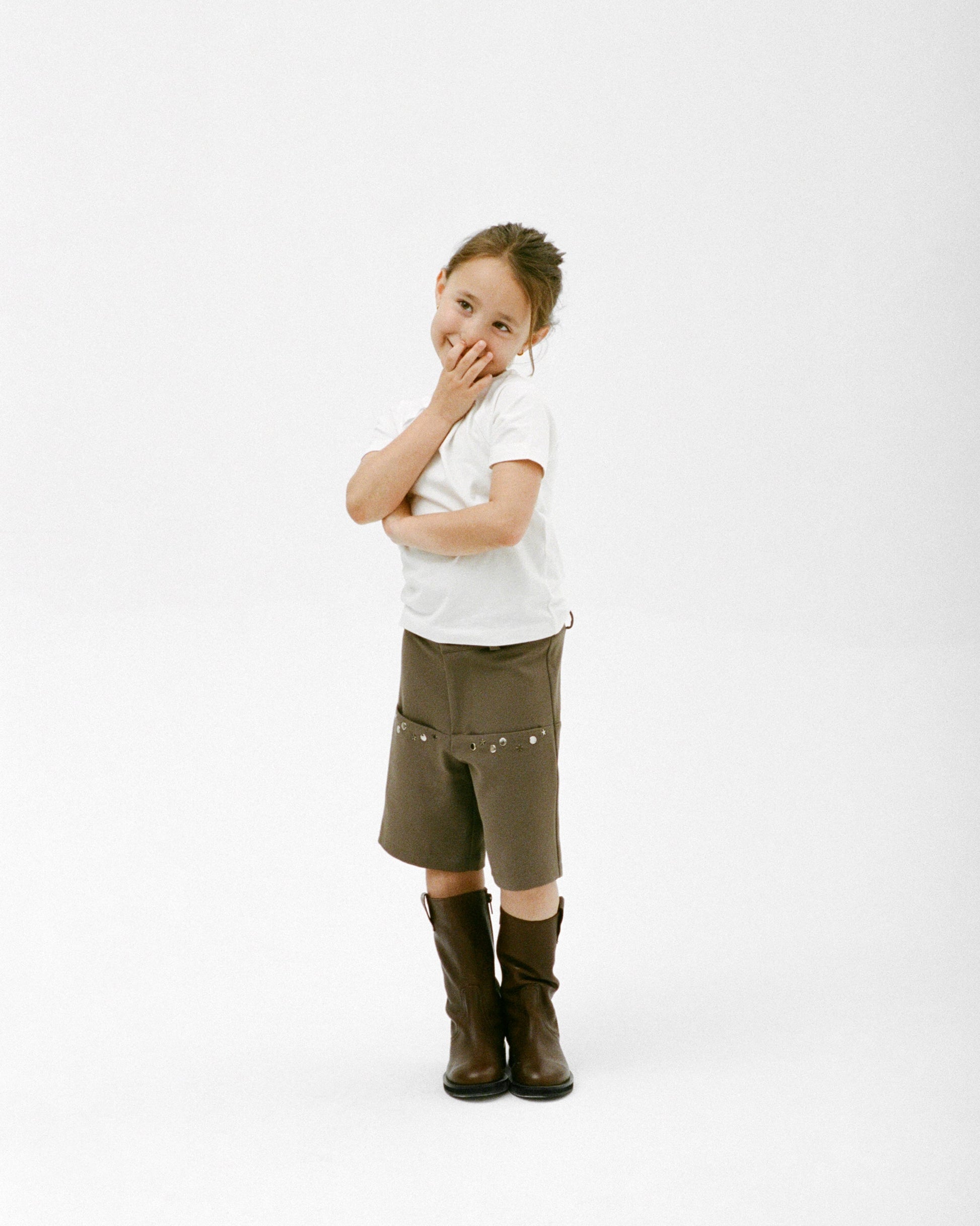 White basic t-shirt with raglan sleeves. The detail of the seams unfinished and the label with the logo embroidered on the back. Unisex t-shirt.