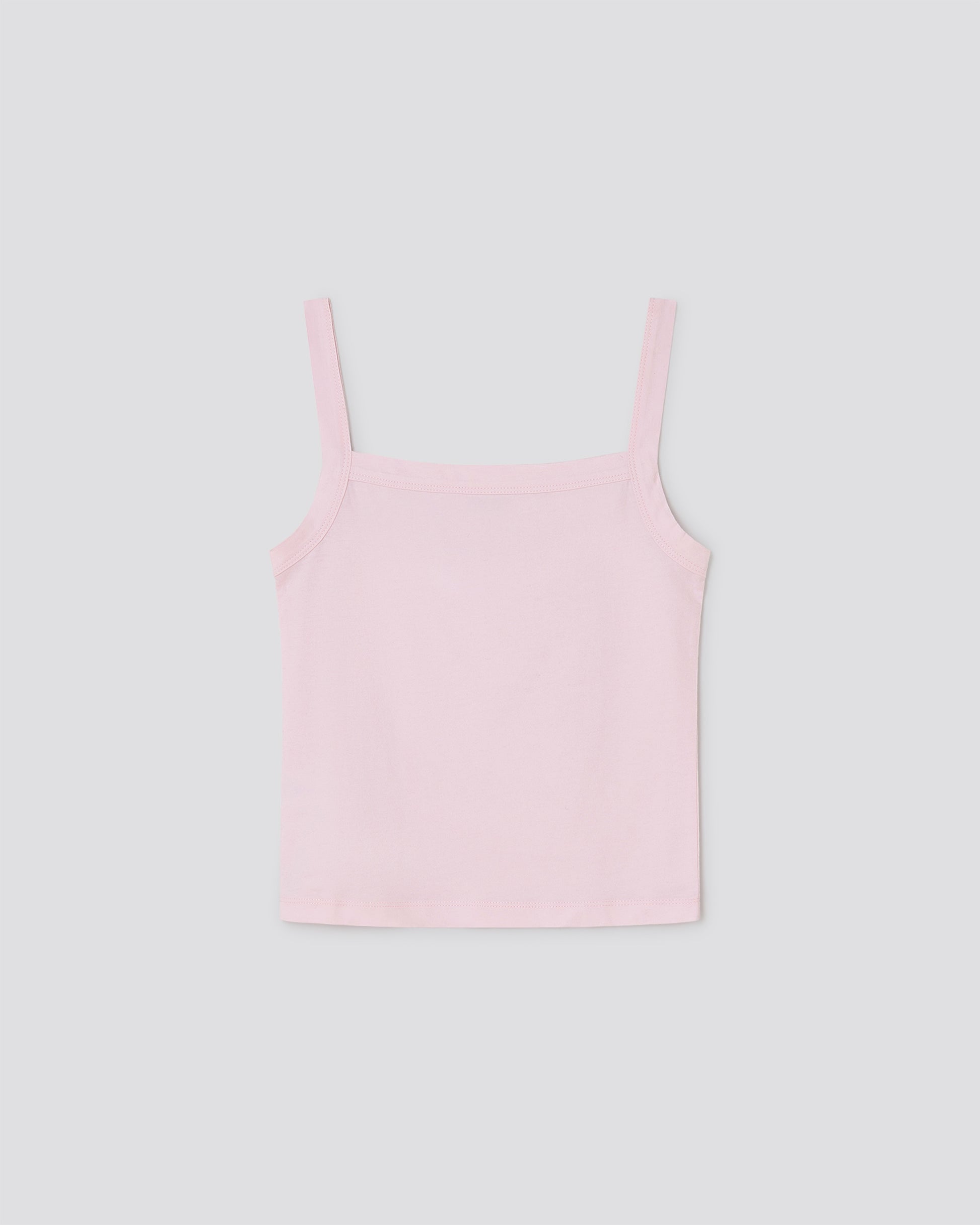 Pink tank top designed with slim fit and a label stitched on the back with the logo embroidered.